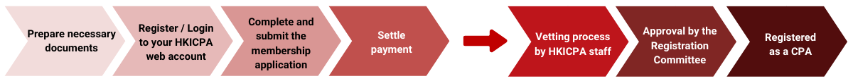 Gather all required documents (application checklist) and ensure they are certified as true copies, if applicable. - Register / Login to your HKICPA web account