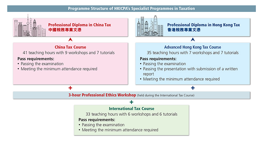 The two professional diplomas in taxation, namely, Professional Diploma in China Tax and Professional Diploma in Hong Kong Tax, are developed from the Advanced Diploma in Specialist Taxation programme introduced by the Institute in 2012.