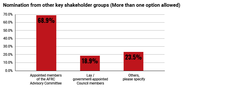 公会进行网上调查,以收集会员对有关提案的看法。调查于2022 年4 月18 日结束。公会共收到 434 个回覆。调查共有 5 个问题 。有两个问题与提名要求有关,另外有两个问题关于选举周期,最后一个问题让回应者对政府的提案提出任何其他意见。前四个问题的回应总结如下。