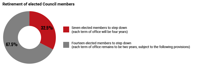 - 将14 名当选理事会成员的选举周期从年度周期调整为两年周期;和