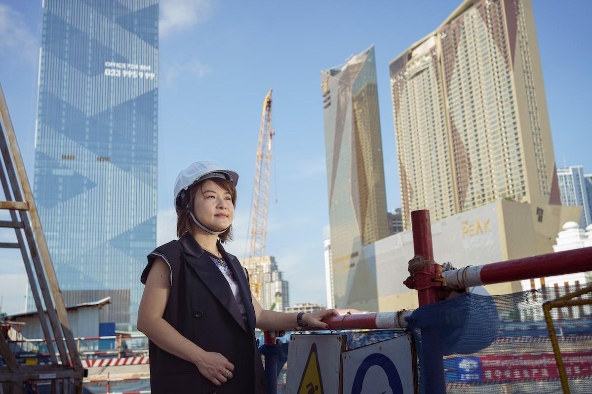 陳詠芝,攝於金邊公寓開發項目金匯MESONG施工現場;她曾任聯博集團亞洲首席財務官,開啟了她的資產管理職業生涯。